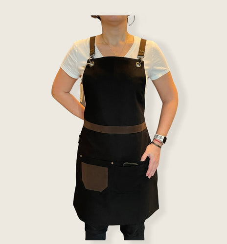 Beige Apron with Genuine Leather Straps and Pockets - ISTANBUL 08