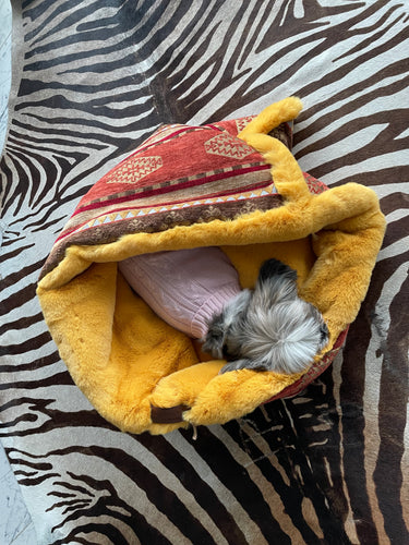 Sophie, High-end faux fur and kilim-velvet fabric, handmade pet bed