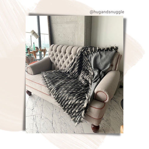 Silver, Faux Fur and Half Cashmere Throw Blanket