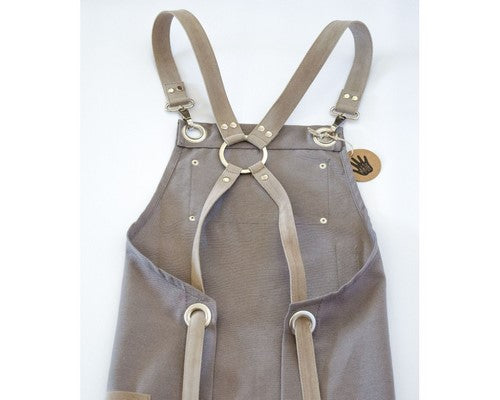 Gray Beige Design Apron-Suede Straps and Pockets Florist-Barista-Hairdresser-Tattooers-Make Up Artist-Chefs-Server-Bartender-BBQ-Utility